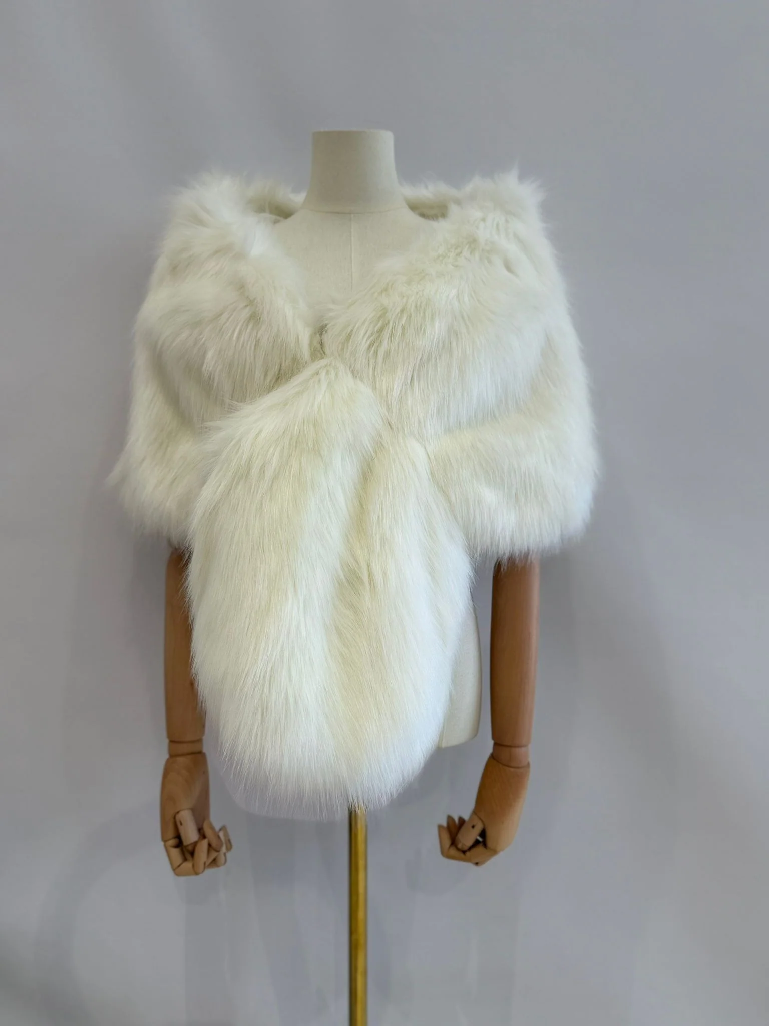 Estola de pelo grande blanca ideal para novias o invitadas de boda en días fríos. Para poner tanto cubriendo ambos brazos como sobre un hombro, es muy favorecedora, de pelo sintético muy suave y agradable que le dará ese toque especial a tus looks. Talla única