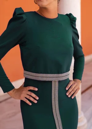 Vestido de fiesta midi con pasamanería