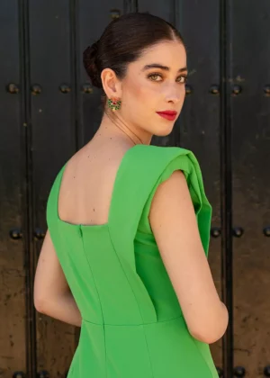 Vestido de fiesta verde con escote cuadrado