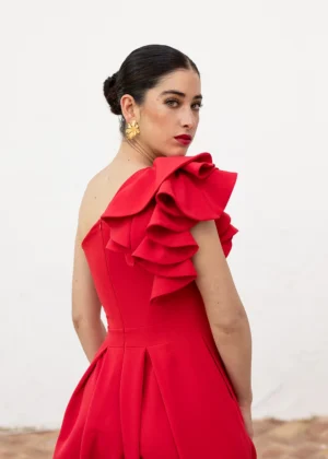Vestido de fiesta midi asimétrico con tablas rojo