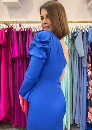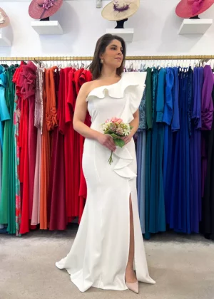 Vestido de fiesta corto asimétrico con volante
