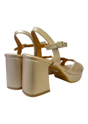 Sandalias de tacón ancho y plataforma de metal satinado